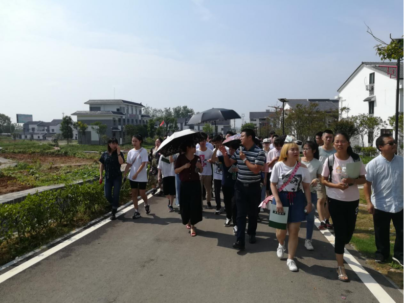 首先,实践团在华容县政府工作人员的带领下来到华容县三封寺镇泰和村。讲解员向同学们介绍了泰和村人居环境整治和乡村振兴的相关措施,同学们了解到泰和村人居环境整治主要体现为对“四房”的整治,拆危房、建广场、改厕所,泰和美丽乡村建设取得较大成就;同学们也了解到泰和乡村振兴的两个重要经验——第一,发动群众,乡村振兴事关人民根本利益,必须民事民办,充分调动广大人民的积极性;第二,结合产业,寻找合适的产业,在打造特色产业的同时实现农民增收,优化升级农村产业结构。