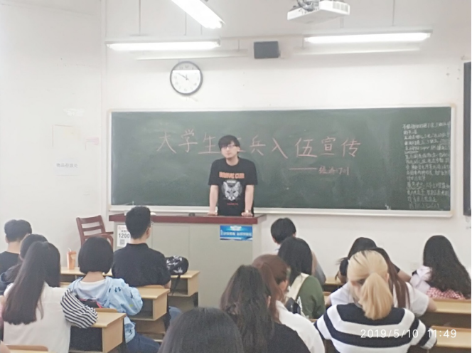 经济1701班于二教403举行“2019征兵政策宣传班会”。班会由于浩同学担任主讲人,经济1701班全体同学参加了此次班会。