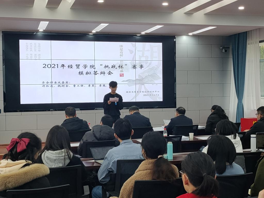 2021年3月7日下午三点,经贸学院“挑战杯”创新创业竞赛答辩会在行政楼201顺利召开,教务处处长许和连老师、学院党委书记祝树金老师、副院长曹二保老师、党委副书记李曼老师、专业教师李巍老师,何昱老师作为评委及嘉宾参会。