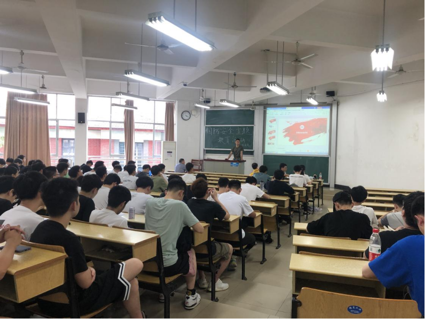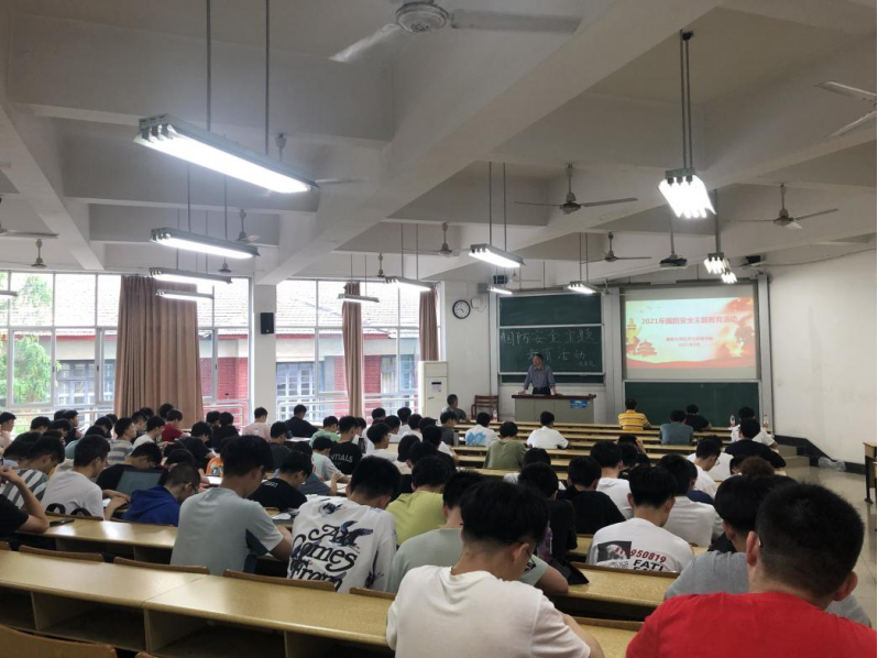 于6月1日下午在二教302开展国防主题教育活动。人民武装部戴谋元老师、何熙老师莅临指导,学院党委副书记李曼老师,全体辅导员、全体适龄男生参加,院学工办主任蔡婕萍老师主持。