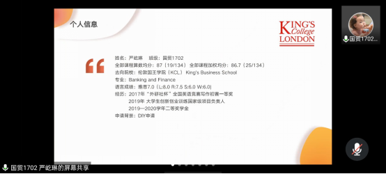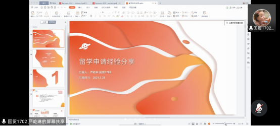2018级举办出国留学经验交流会,本次会议通过腾讯会议线上开展,邀请了2017级毕业生严屹琳、资深留学指导老师李纪勇进行分享和指导。