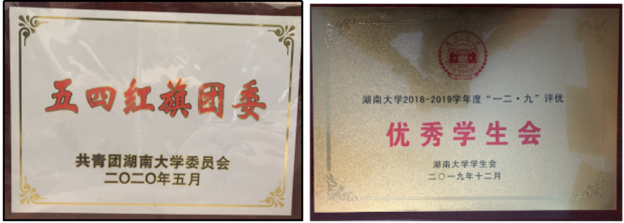 2019-2020年度分获校五四红旗团委、优秀学生会