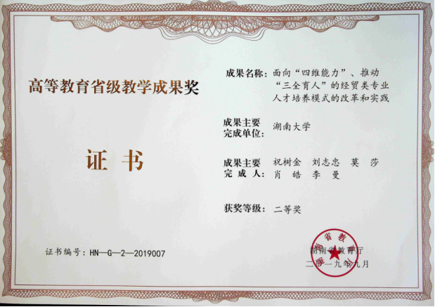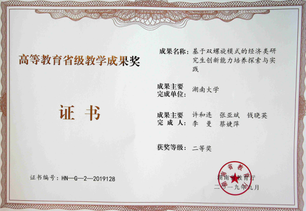 学院不断探索人才培养模式,着力培养德才兼备、经世致用的人才。在实践过程中,学院以党员教师为主力,针对本科生探索实施面向“四维能力”、推动“三全育人”的经贸类专业人才培养模式,针对研究生探索实施“基于双螺旋模式”的经济类研究生创新能力培养,获得湖南省教学成果奖二等奖2项,校级教学成果奖一等奖2项。