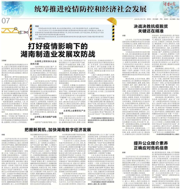 湖南日报 | 肖皓:把握新契机,加快湖南数字经济发展
