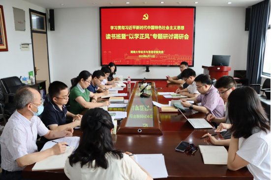党委班子成员开展学习贯彻习近平新时代中国特色社会主义思想读书班暨“以学正风”专题研讨会。学院党委书记祝树金主持,副院长肖皓领学,副院长徐航天、副处级组织员刘周平作主题发言,其他党委班子成员作交流发言。教工经济支部党员列席学习。