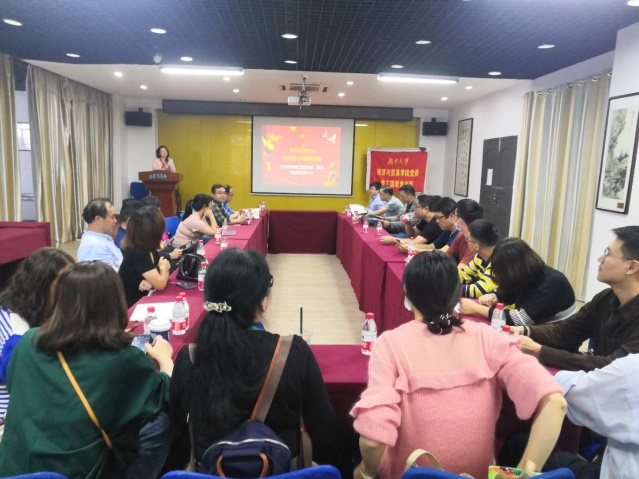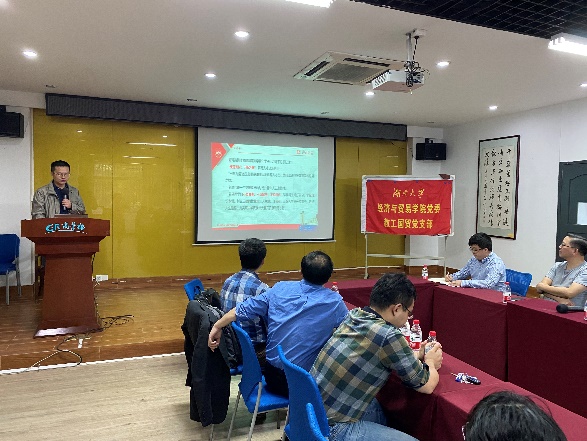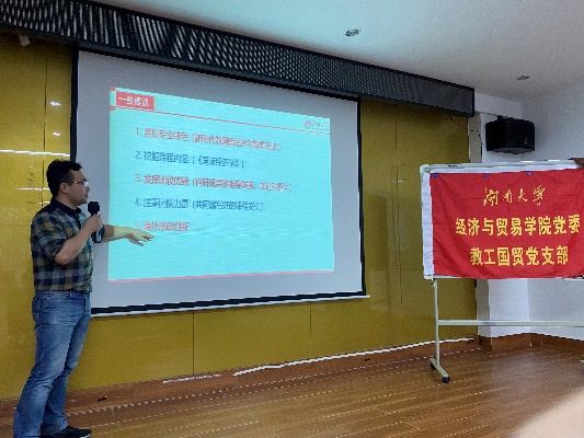重要讲话精神暨课程思政教研会议。这也是为推动国贸党支部建设和教学科研活动紧密结合举行的一次学习活动。经贸学院党委书记祝树金教授,党委委员许和连、曹二保、肖皓教授参加了会议。