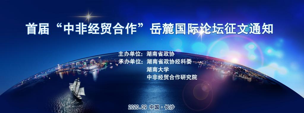、中非经贸合作研究院承办的首届“中非经贸合作”岳麓国际论坛拟于2020年9月在湖南长沙举行。为了更好地促进学术交流,现面向全国高校、科研机构、政府机关、企业等单位征集论文,具体事项通知如下:
